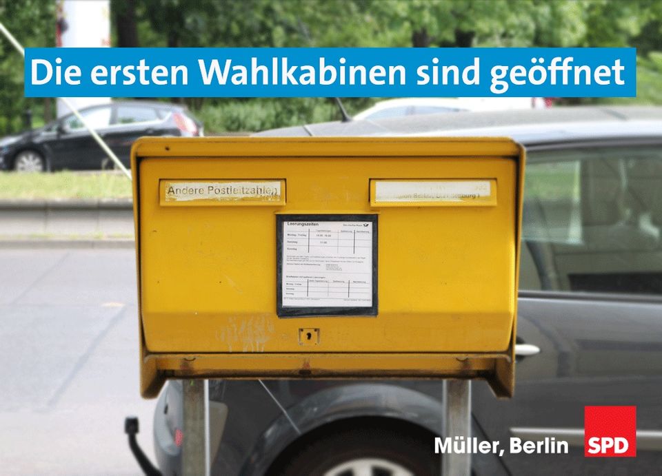 Sie können auch schon vor dem Wahltag wählen gehen. Dazu gehen Sie einfach ins Wahllokal im Rathaus Schöneberg, Raum 195. Nehmen Sie dazu Ihre zugesandten Wahlbenachrichtigung und Ihren Personalausweis oder Reisepass mit.