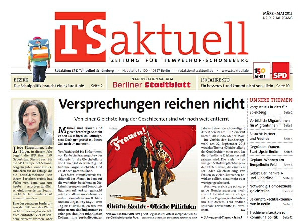 Die neue Ausgabe der »TS aktuell« ist da! Seit dem 8. März zu haben bei allen Aktionen der SPD Tempelhof-Schöneberg zum »Internationalen Frauentag«.