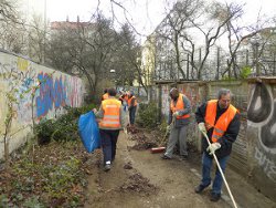 Besonders reinigungsbedürftig war der Weg von der Julius-Leber-Brücke an der „Bio-Insel“ vorbei zur Gotenstraßen und der Abzweig zum Spielplatz. An dem kleinen Platz mit den Bänken wurde eines deutlich: Hier fehlen Mülleimer! Die SPD Schöneberg wird sich dafür einsetzen, dass hier Abhilfe geschaffen wird.