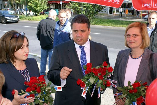 Traditionell verteilt die SPD kurz vor den Wahlen rote Rosen an Passanten. Diesmal gab es für Tempelhof-Schöneberg prominente Unterstützung durch Sigmar Gabriel, Bundesvorsitzender der SPD, der gemeinsam mit Dilek Kolat, MdA und Kreisvorsitzende, Angelika Schöttler, Kandidatin für das Bürgermeisteramt in Tempelhof- Schöneberg und Andrea Kühnemann, Kandidatin für das Berliner Abgeordnetenhaus in Lichtenrade, an Geschäftsleute und Passanten am Breslauer Platz und in der Rheinstraße Rosen verteilte und mit vielen Bürgerinnen und Bürgern ins Gespräch kam.