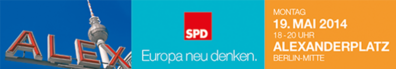 Sechs Tage vor dem Wahltag startet die Berliner SPD am 19. Mai mit einer zentralen Kundgebung auf dem Alexanderplatz in die Schlussphase des Wahlkampfes. Kommen Sie am 19. Mai auf den Alexanderplatz! Die SPD stellt ihre Pläne für ein anderes, ein besseres Europa vor. Denn am 25. Mai ist Europawahl – und Ihre Stimme zählt!