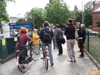Kinderbetreuung, Erziehungskonzepte, Reformpädagogik, Frauenerwerbsarbeit, Ausbildung, Gesundheitsversorgung, § 218 und vieles mehr waren die Themen, die auf dem Weg von der Karl-Schrader-Straße bis zur Potsdamer Straße angesprochen wurden. Wer glaubt hier die Schlagworte der Parteien für die Abgeordnetenhauswahlen zu lesen, irrt.